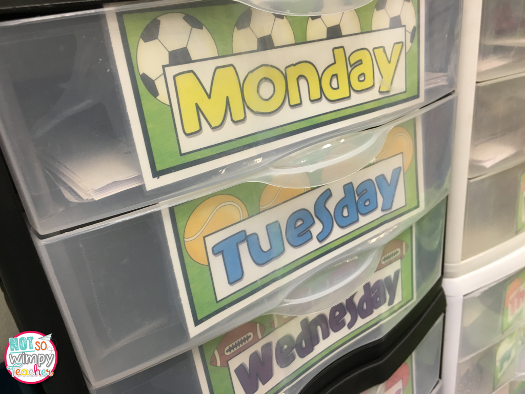 I ask my students to bring a water bottle to school each day. We live in a hot climate and it’s easy to get dehydrated. However, I can’t stand having the water bottles on their desks. They fall, tip and leak. They take up precious working space. So I purchased a Over-the-Door Shoe Organizer, Java. I stapled student numbers to the pockets and now every student has a place for their water. They are encouraged to grab a quick drink anytime I am not talking.